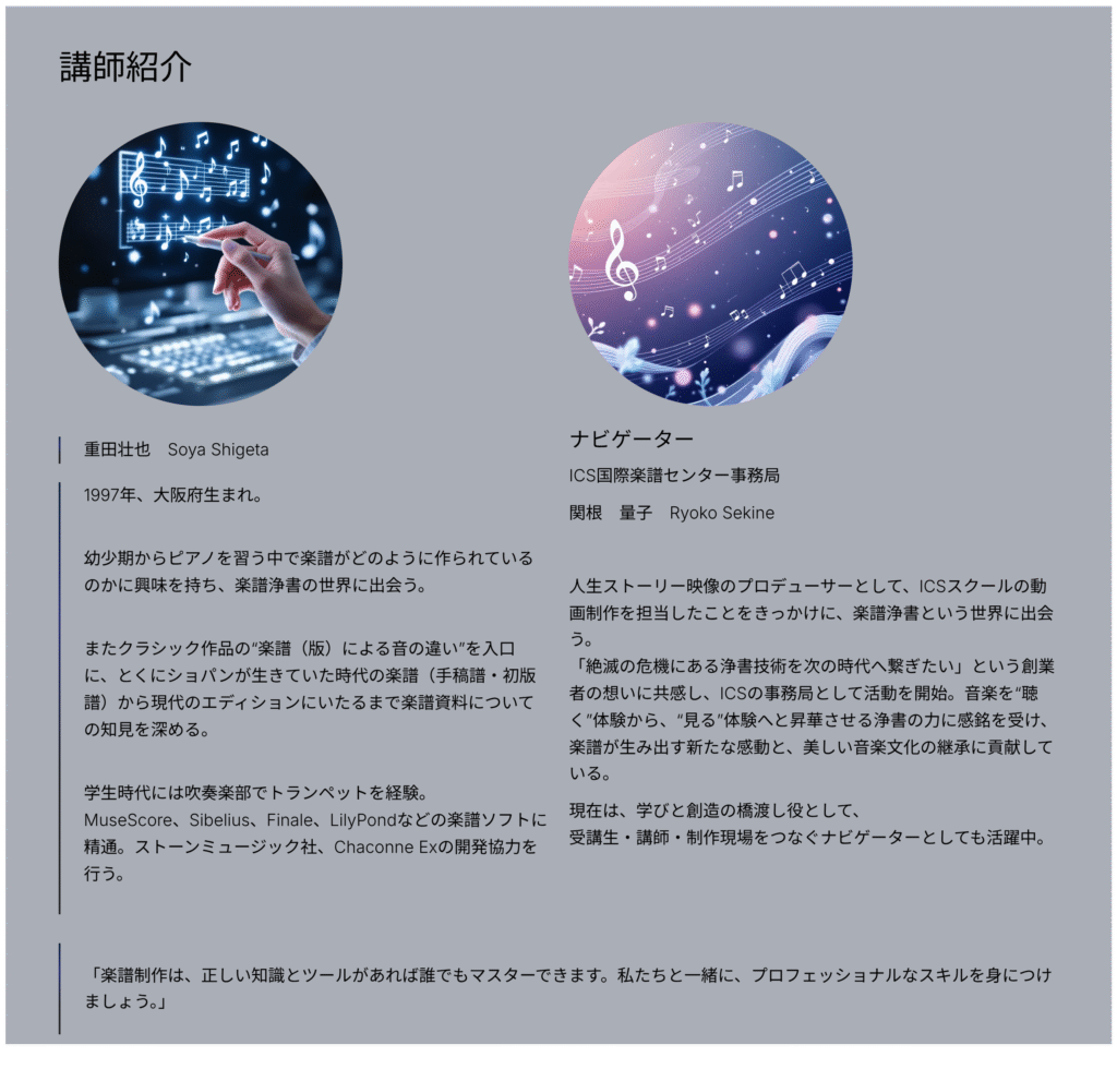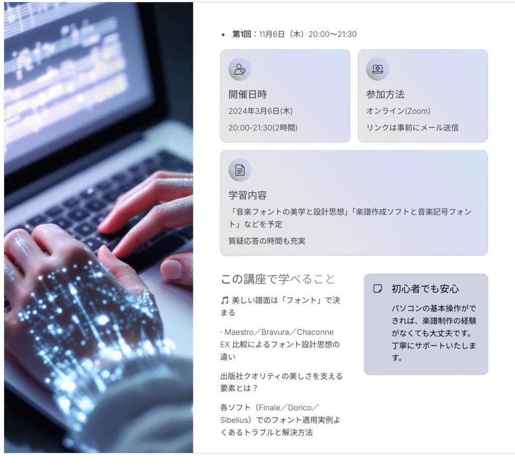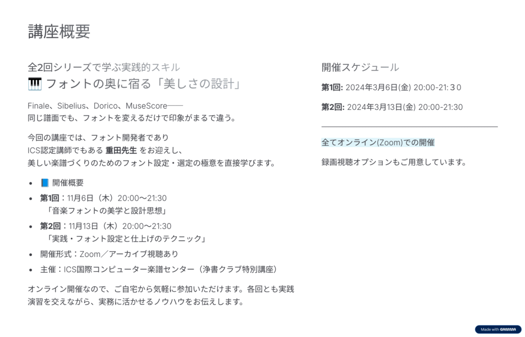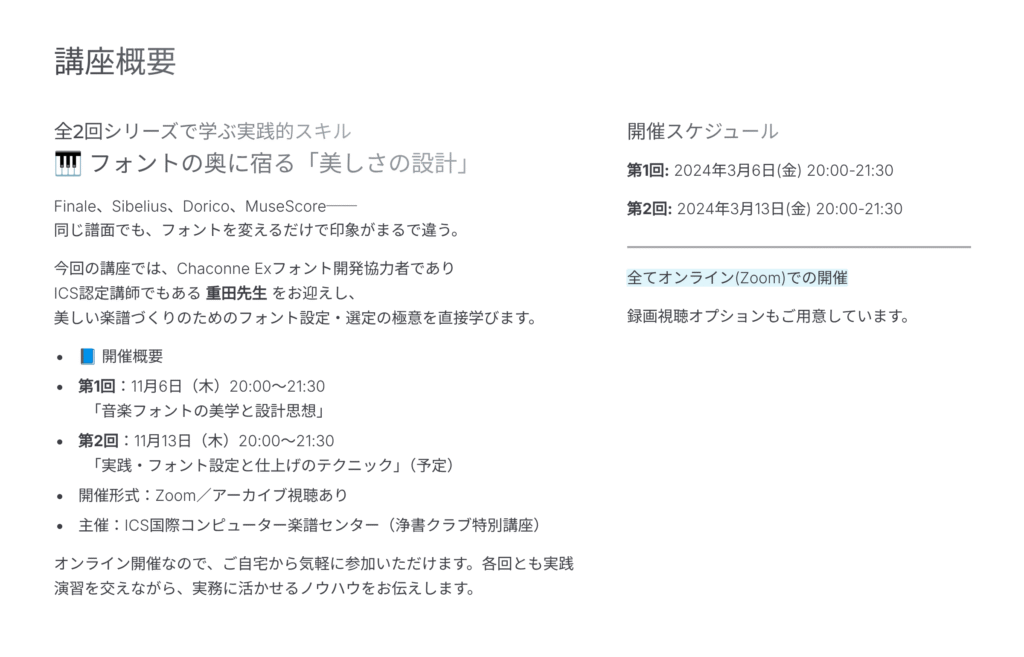 - 対象:作編曲家・演奏家・楽譜制作・教育関係者・浄書実務者