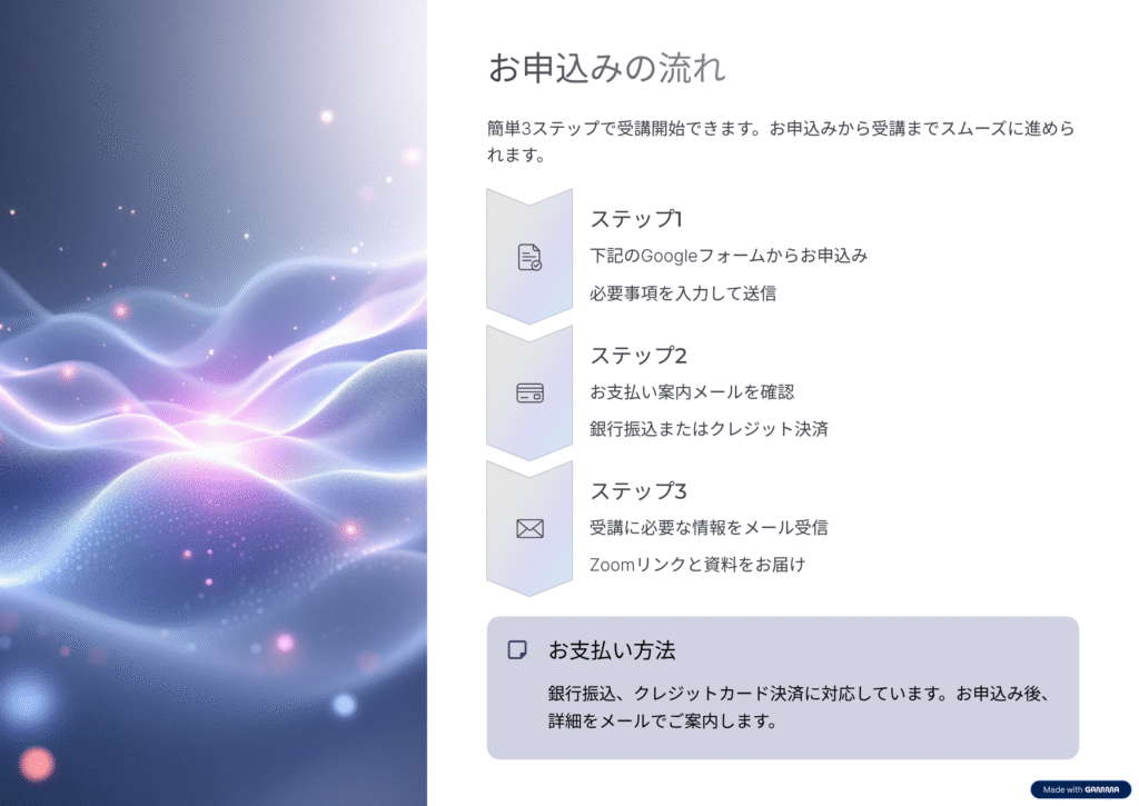 ※お預かりする情報は、受講運営およびご連絡以外の目的では使用しません